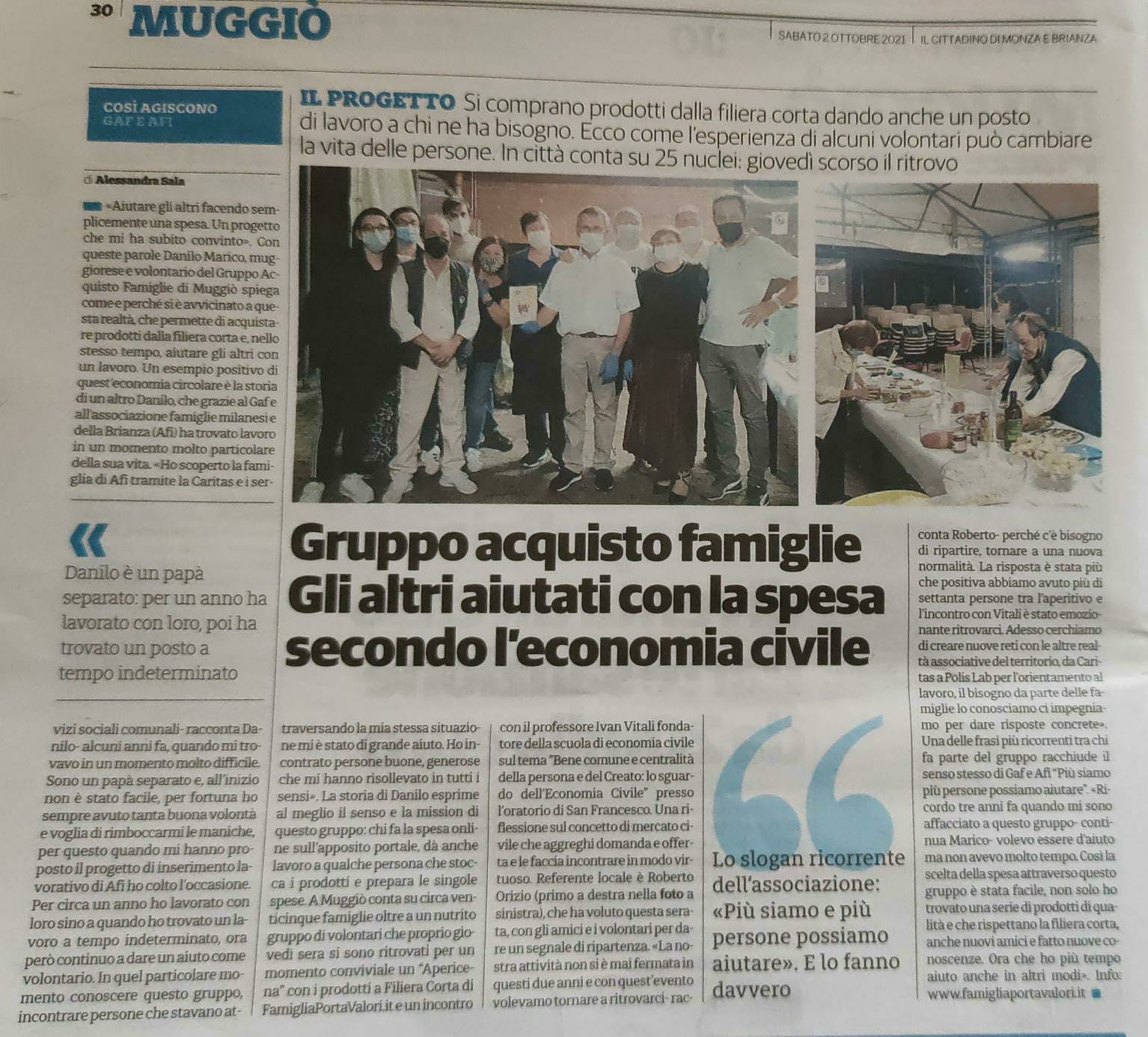 In particolare, il progetto https://www.famigliaportavalori.it/ è un esempio concreto di economia civile, implica una scelta di fronte a un gesto quotidiano come il fare la spesa ("voto col portafoglio"), valorizzando particolari categorie di prodotti/produttori e creando lavoro per famiglie in momentanea difficoltà.